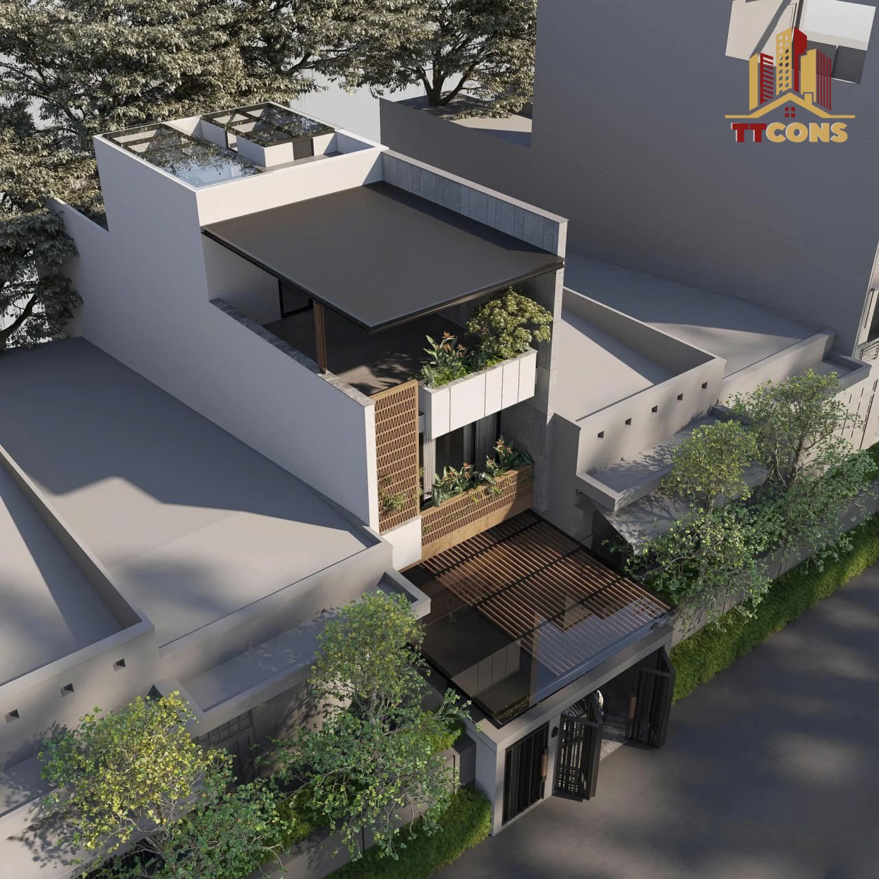 Sự kết hợp khéo léo giữa hình khối kiến trúc mạnh mẽ, vật liệu hiện đại, hệ thống cửa kính rộng và không gian tầng thượng mở đã giúp công trình tạo nên dấu ấn riêng giữa khu dân cư liền kề. Đây là mẫu thiết kế lý tưởng cho những gia đình trẻ yêu thích sự tối giản, thoáng đãng và mong muốn sở hữu một không gian sống tiện nghi, sang trọng nhưng không kém phần thân thiện.